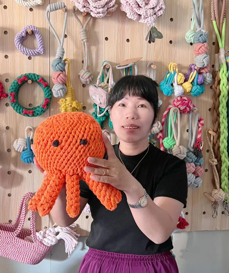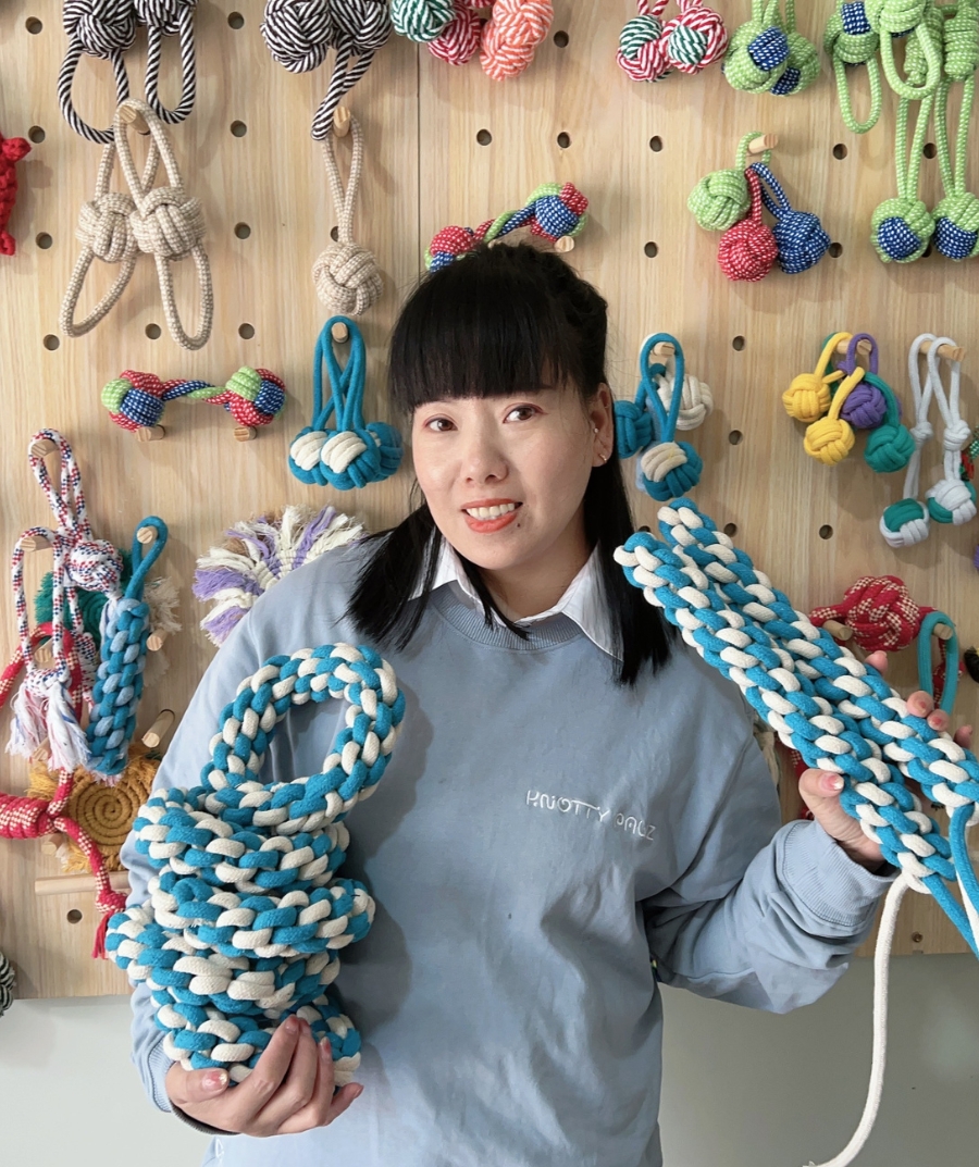 With over 25 years of expertise, Ling is our master macramé rope artist. Her journey began at age 18, and her skilled hands have crafted countless intricate rope designs since then. Ling's masterful knotting techniques and attention to detail make each piece a work of art, bringing traditional macramé craftsmanship to modern pet toys.